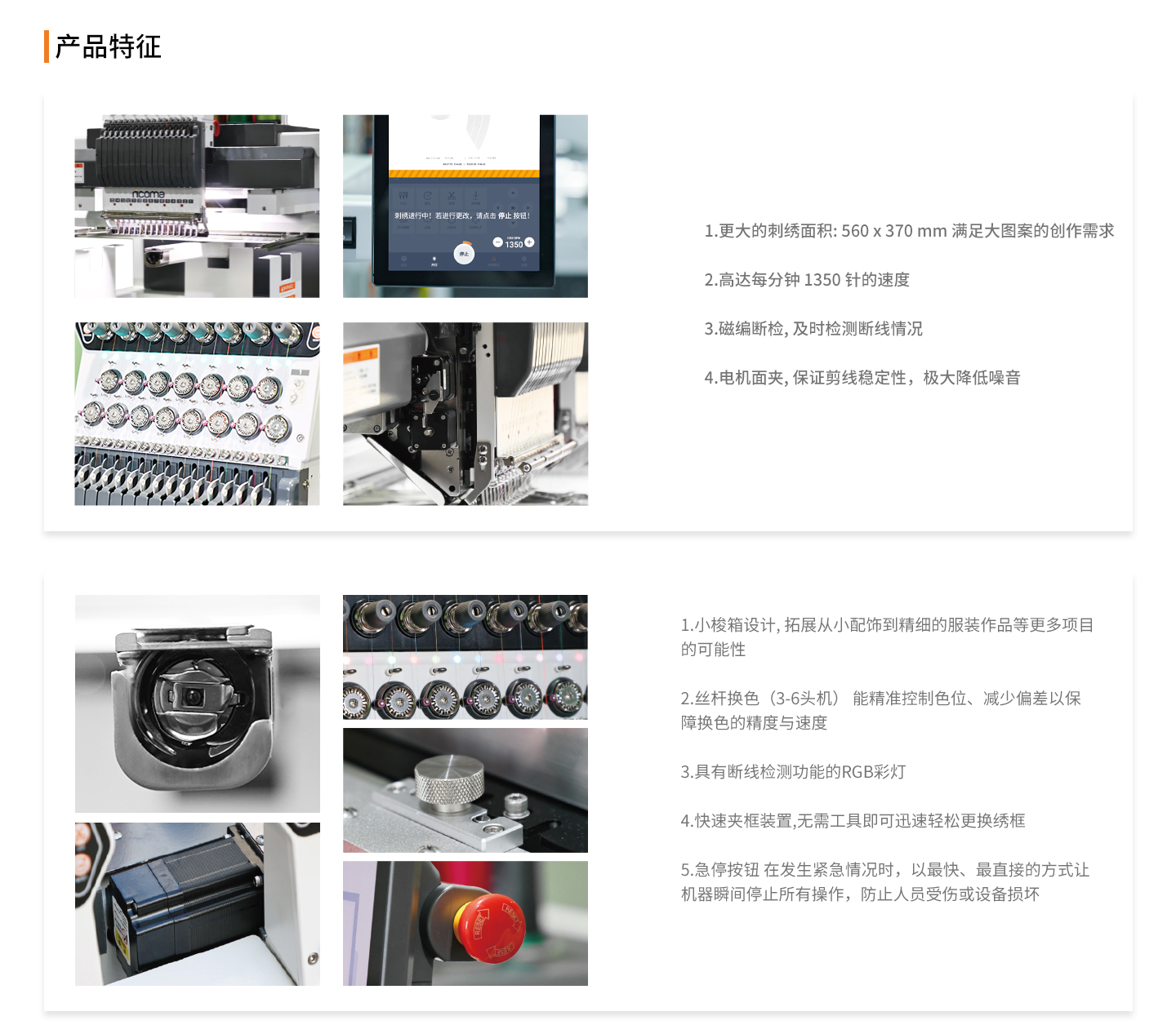 机器型号 头数 针数 净重 刺绣面积 机器尺寸